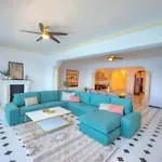 Met een balkon die zijn uitgerust met een bank, en extra voorzieningen zoals airconditioning, biedt Beautifully Furnished Seafront 4 Bedrooms Goslm4 ultiem comfort. Een badkamer beschikt over een badkuip en een douche samen met een haardroger en handdoeken.